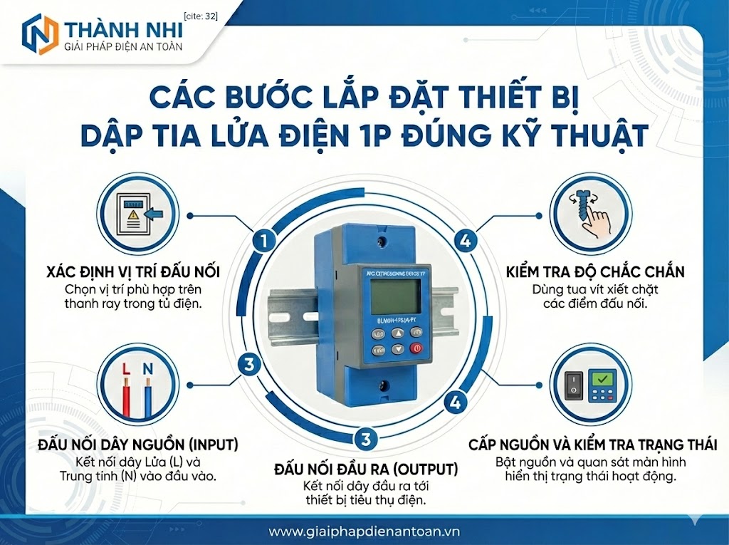 2. Quy trình lắp đặt thiết bị dập tia lửa điện 1P chi tiết