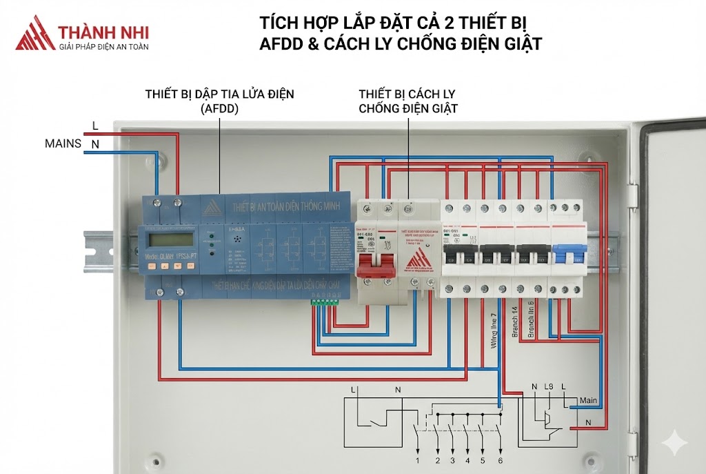 Bù đắp lỗ hổng kỹ thuật: Tia hồ quang có thể không gây rò điện ra đất (nên thiết bị chống giật không nhảy), và dòng rò nhỏ có thể không sinh ra hồ quang (nên thiết bị dập lửa không ngắt). Chỉ khi lắp cùng lúc, mọi kịch bản sự cố đều được kiểm soát.